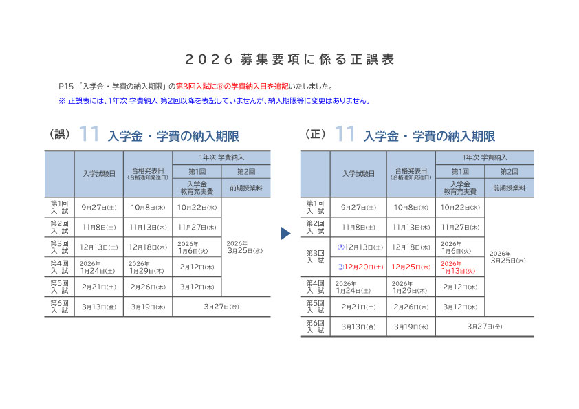 2026募集要項の訂正について(お詫びとご案内)