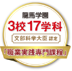 ※実践的で専門性の高い教育を実施している専門学校(学科)に対して、文部科学大臣が認定する「職業実践専門課程」に、本学園の申請該当学科17学科すべてが認定されています。専攻分野の実務に関する知識や技術、技能について企業や業界と連携し、組織的な教育を行っている課程のみに与えられる認定制度です。