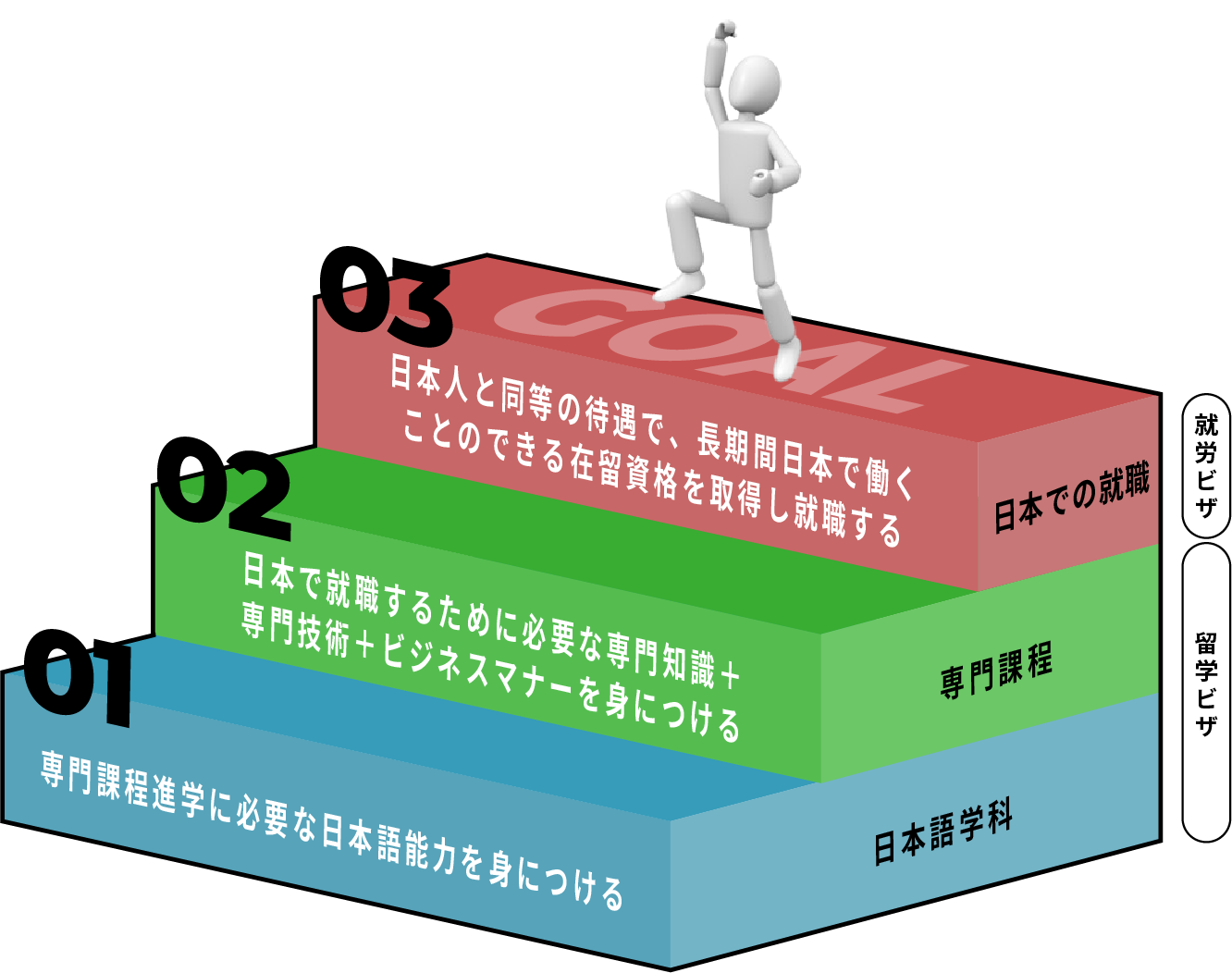 本校で日本語学科を卒業すれば、龍馬学園グループの