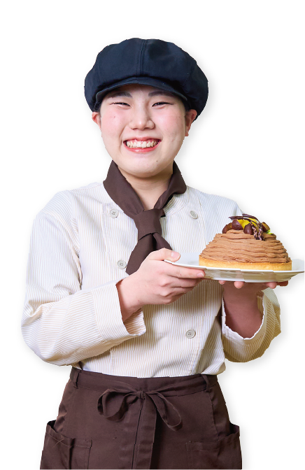 岡豊高校出身お菓子作りが好きで、パティシエを目指して入学しました。製菓実習で技術を習得し、学園祭でクラスメイトと協力して商品を作った経験が心に残っています。夢に向かって共に頑張る仲間や先生のサポートがあり、楽しい学校生活を送れました。将来は自分のお店を持って、多くの人を笑顔にしたいです。