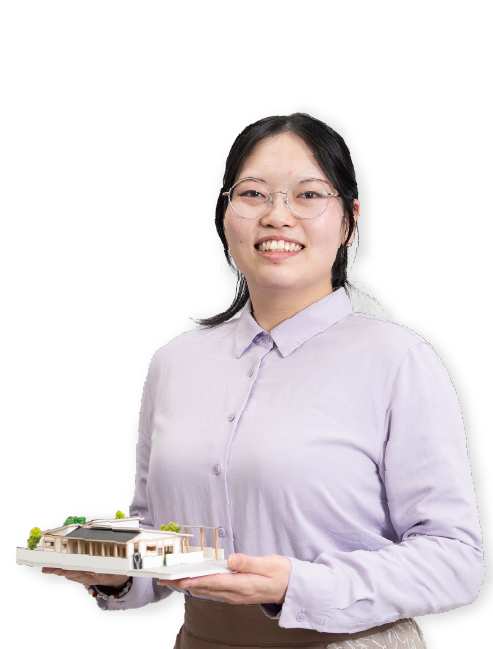 高知工業高等専門学校出身二級建築士資格の取得に専念したくて入学しました。建築構造や力学の授業が楽しく、自分のアイデアを発信できるようになりました。学園祭で作った模型が売れたのも印象的。将来は一級建築士になり、自分の作品を残すのが目標です。短期間で技能を磨くには最適な学校です。