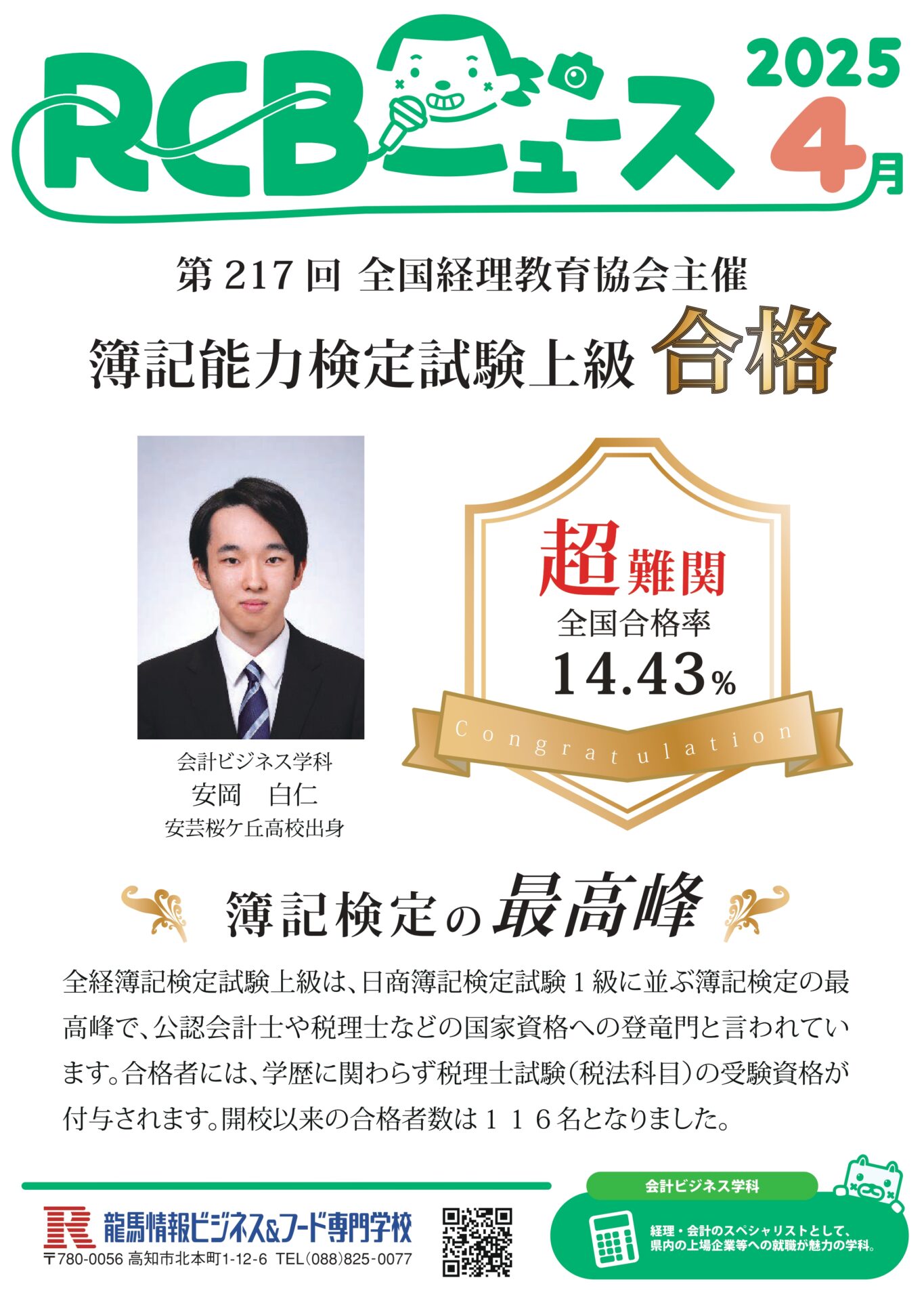 会計ビジネス学科の学生が全経簿記検定上級に合格しました!
